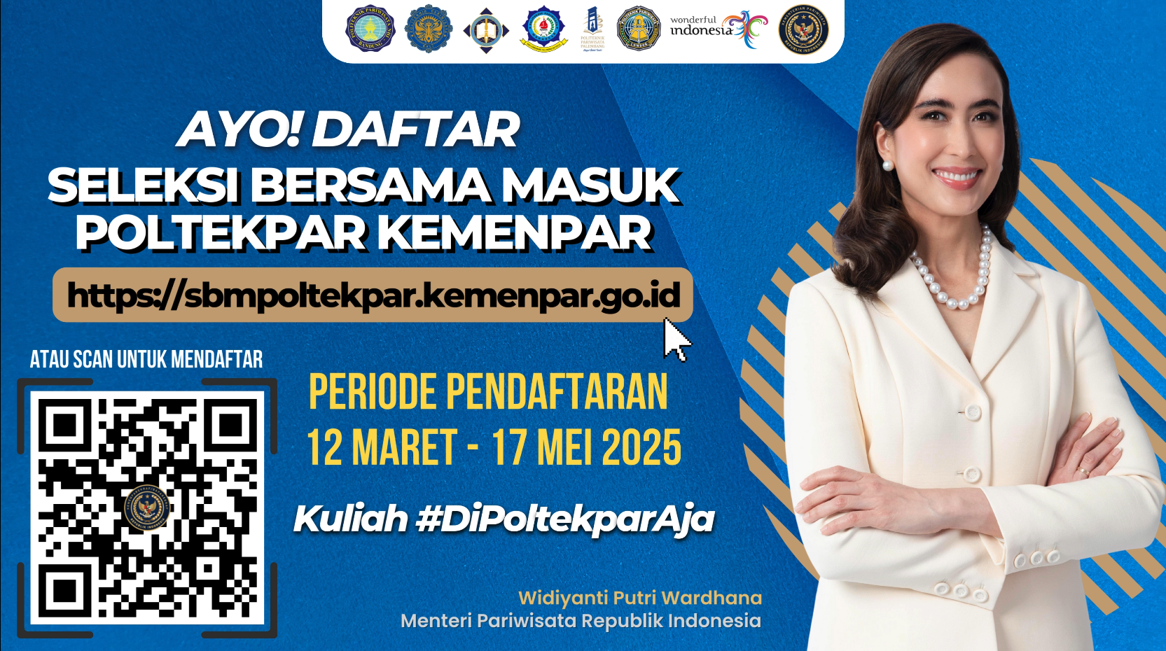 PMB yang dilakukan melalui jalur Seleksi Bersama Masuk Politeknik Pariwisata (SBM Poltekpar). Setiap tahunnya, Kementerian Pariwisata menyelenggarakan ujian masuk Poltekpar bagi putra/putri terbaik bangsa untuk menempuh pendidikan di enam Poltekpar, yaitu: