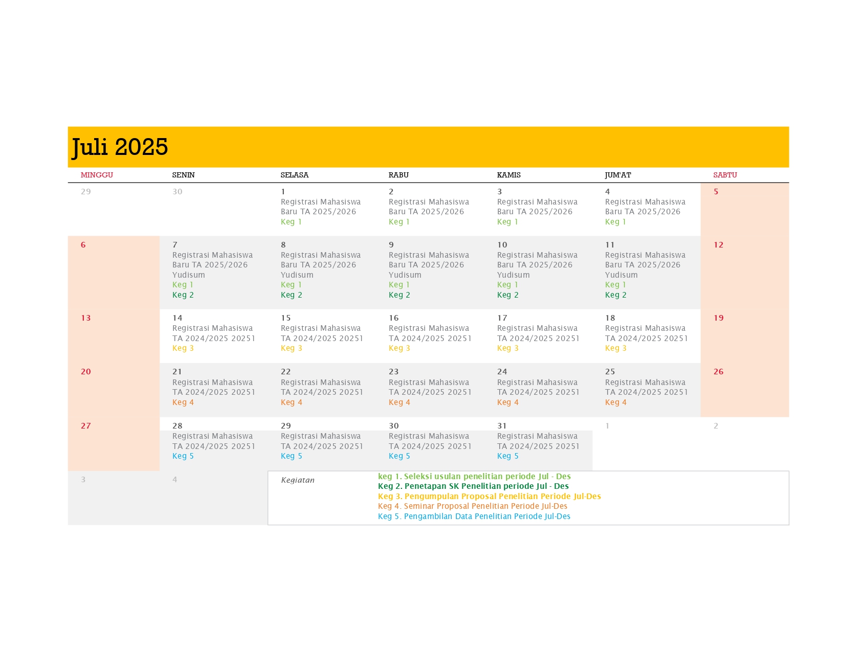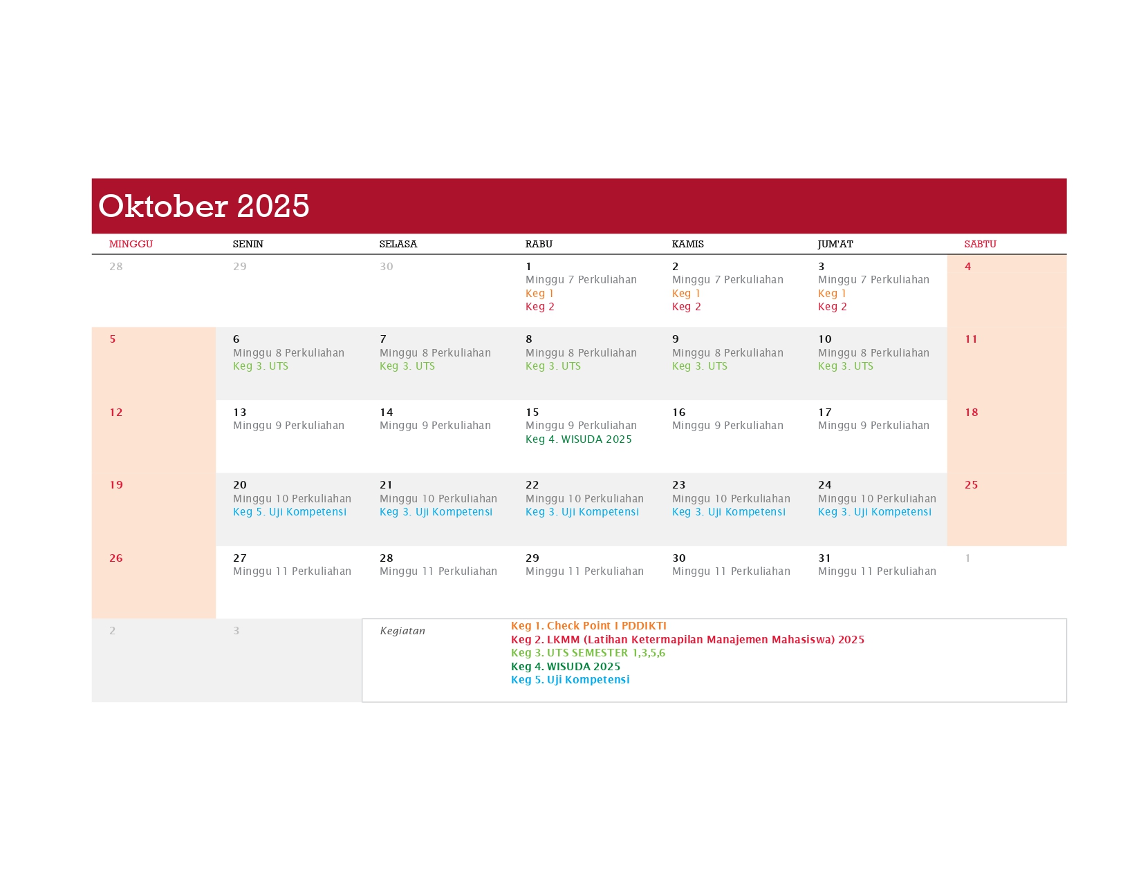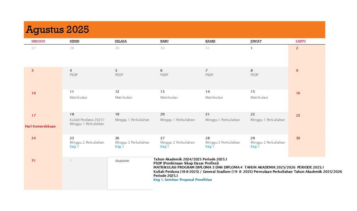 Berikut adalah Kalender Kerja Poltekpar Palembang Tahun 2025