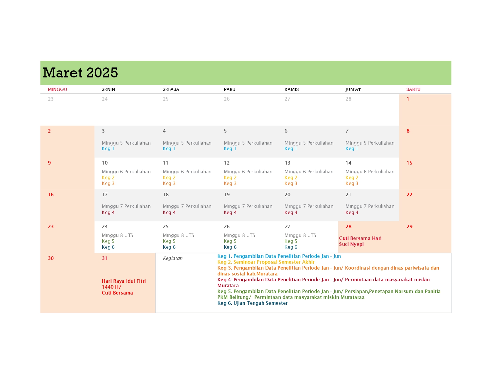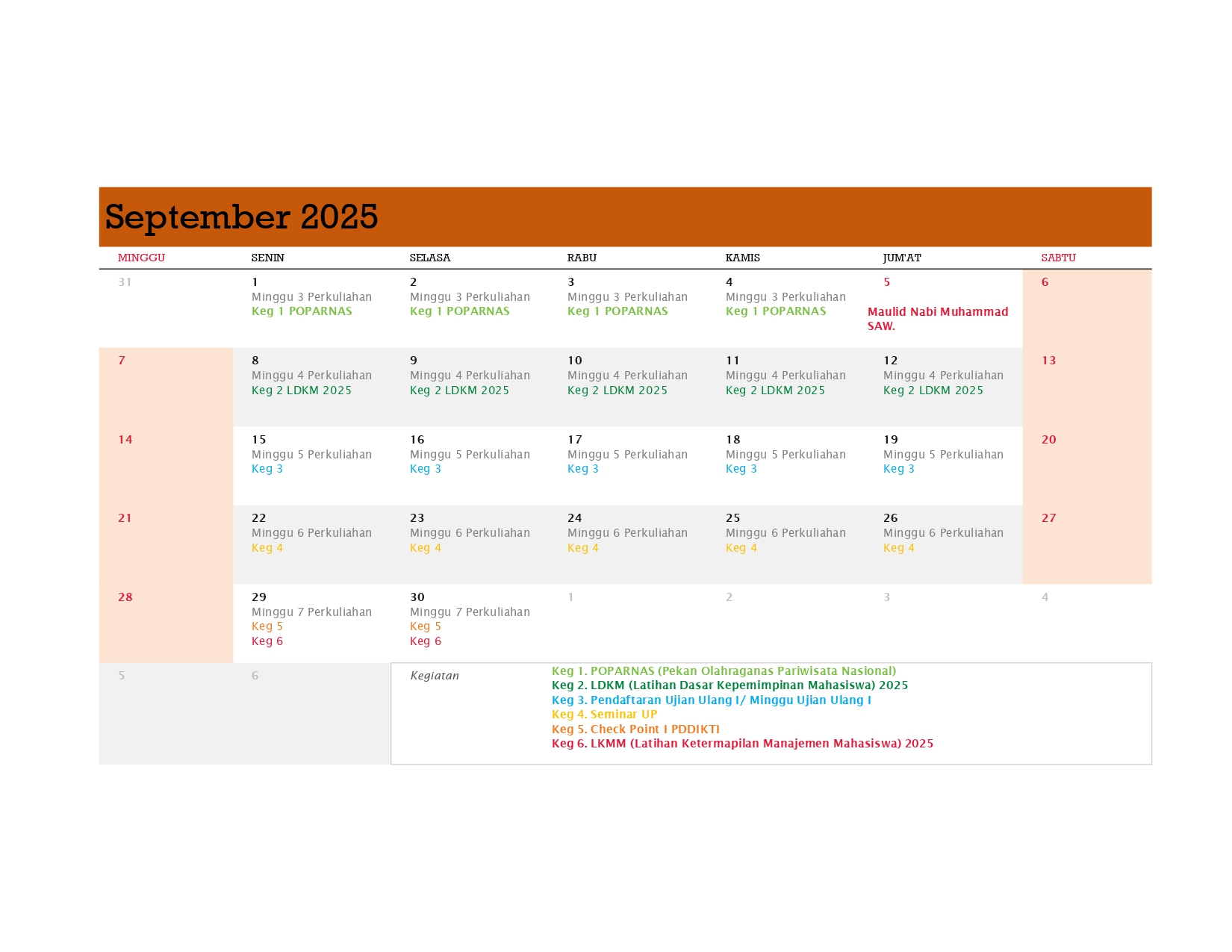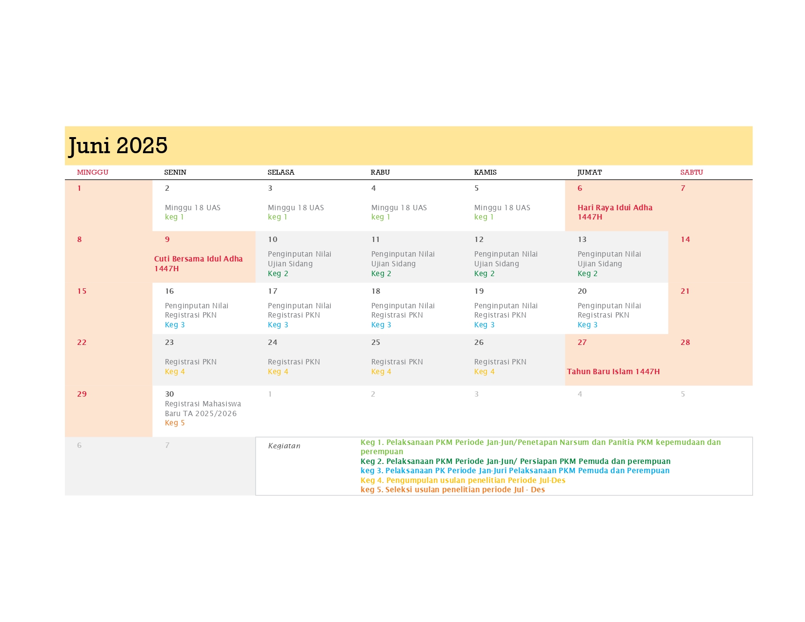 Berikut adalah Kalender Kerja Poltekpar Palembang Tahun 2025